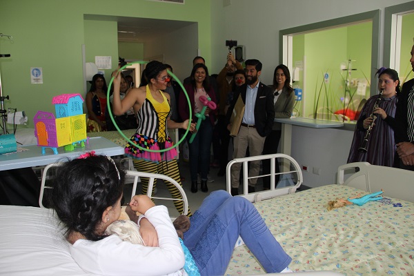 La manifestación artística se presento por cada sala de hospitalización, entregando alegría y emoción a los más pequeñitos, quienes recibieron un enternecedor gesto de parte de las autoridades que visitaron el lugar, además de un lindo regalo.