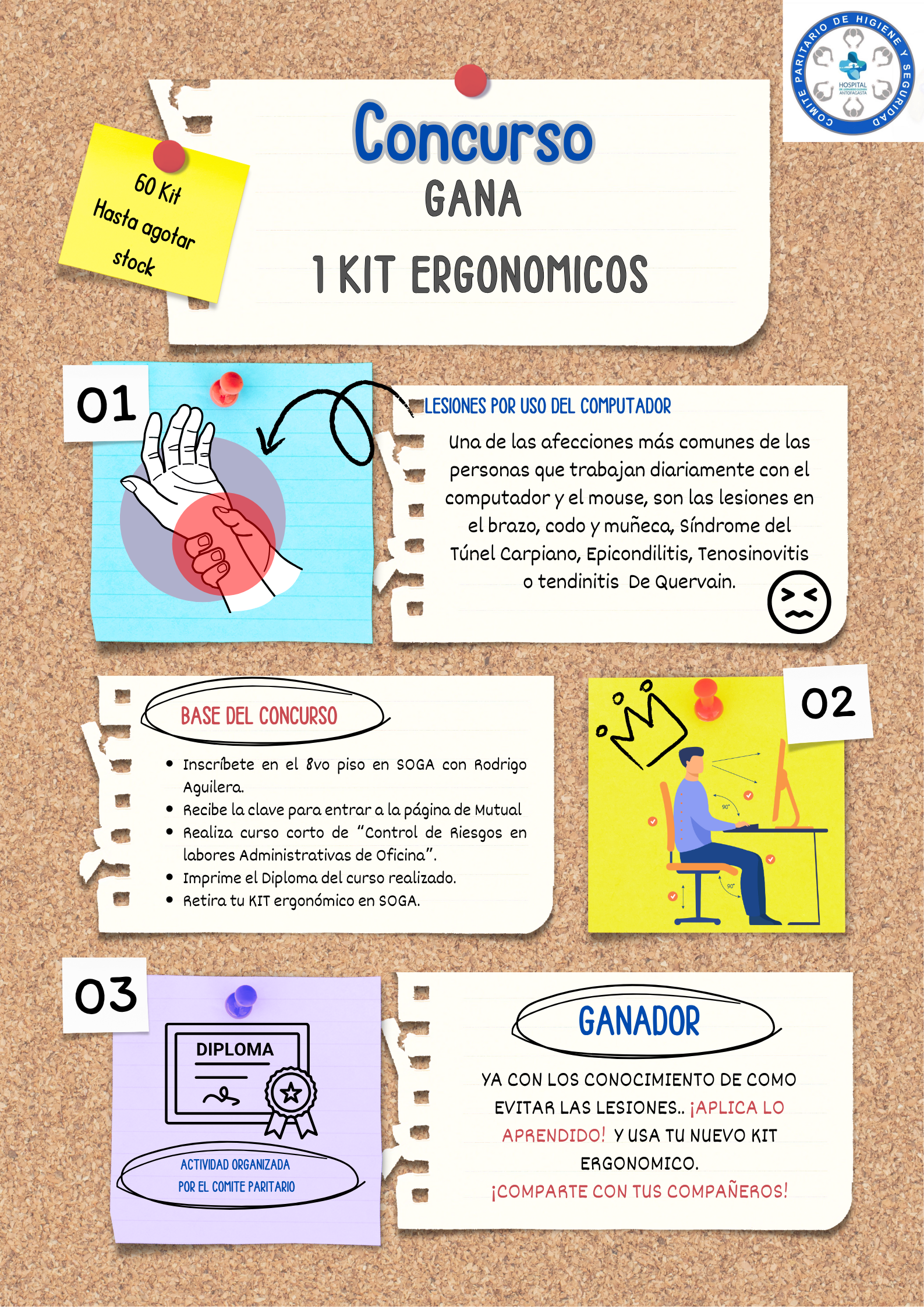 Por esta razón el Comité Paritario, invita a los funcionarios a adquirir un KIT ERGONÓMICO que uses en tu puesto de trabajo, sigue las indicaciones en el afiche adjunto.